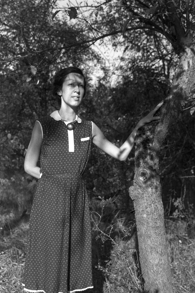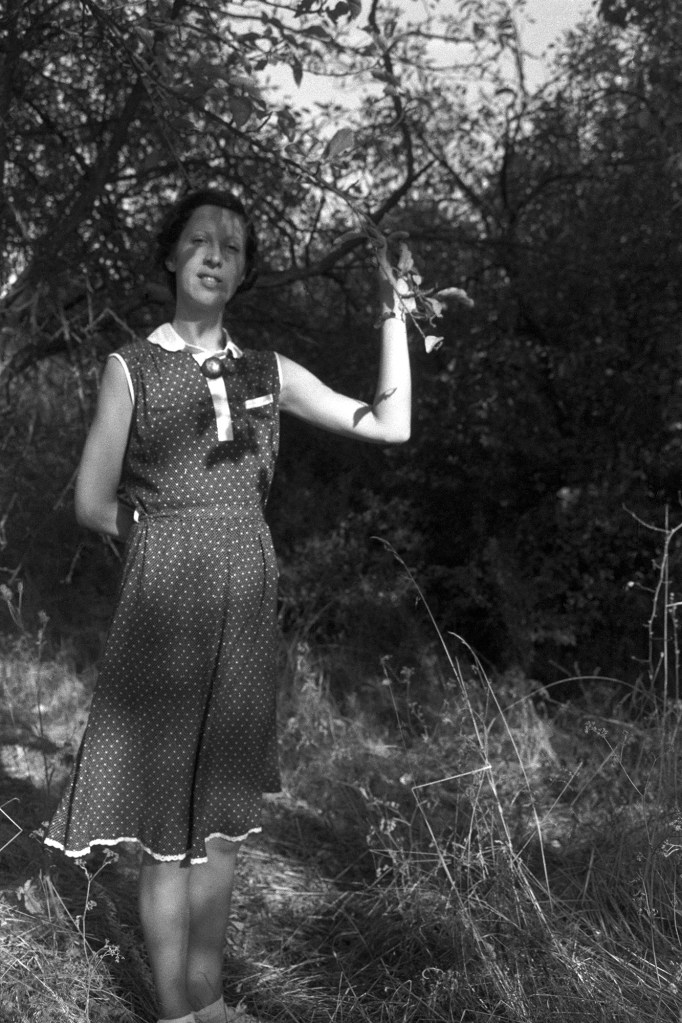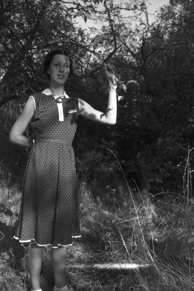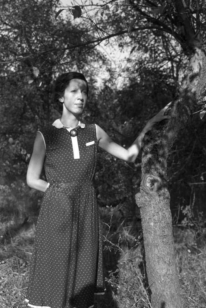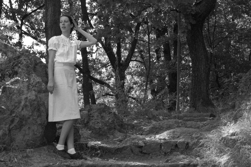 Photographs from the work Polka are based on two concepts and divided in two parts. The first part (in lambda print technique) was generated by reconstructing models of private photographs from the mid-20 century period, where I photograph myself in the role of Polka, smiling and cheerful. Some of the used landscapes belong to background of the authentic Polka’s photos.